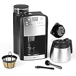 MAHLEN & BRÜHEN – Kaffeemaschine mit integriertem Präzisions-Kegelmahlwerk für eine 5-stufige Mahlgradeinstellung. Zubereitung auch mit Kaffeepulver möglich. Mit Permanentfilter – Papierfilter sind nicht notwendig, können aber verwendet werden (Korbfiltertüten).