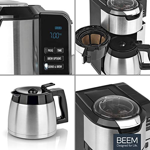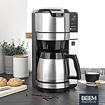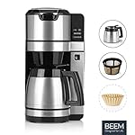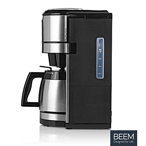 AUSREICHEND FÜR ALLE: Mit der 1,25 l doppelwandigen Isolierkanne können bis zu 10 Tassen Kaffee zubereitet werden, der Bohnenbehälter mit Frischeschutzdeckel fasst ca. 80 g frische Kaffeebohnen, genau richtig für eine Kanne leckeren Filterkaffee.