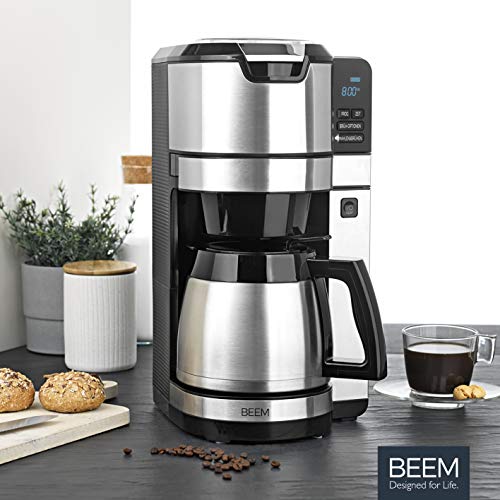 MAHLEN & BRÜHEN: Frisch gemahlen ist halb gewonnen. Lecker aromatischer Kaffee aus frisch gemahlenen Bohnen, ganz automatisch. Diese Filterkaffeemaschine mit integriertem Mahlwerk ist sowohl für ganze Bohnen als auch für gemahlenem Kaffee geeignet.