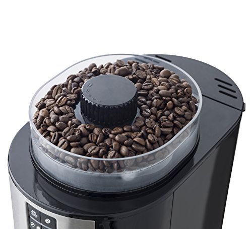 Wasserstandsanzeige innen (max. 750 ml), Großer Bohnenbehälter (max. 90 g), 5 Mahlgrade für individuellen Kaffee-Genuss, Praktische Warmhalteplatte